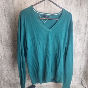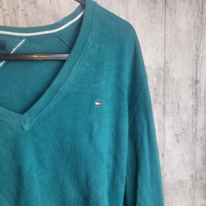Tommy Hilfiger Green V-Neck Long Sleeve Cotton Jumper – Men’s Large
