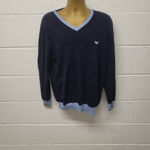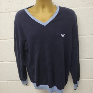 Armani Navy V Neck Designer Sweatshirt Vgc Xl