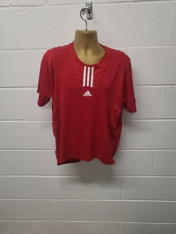Adidas Red 44/46 Chest Large T-shirt. Nice top a few pulls as shown in photos