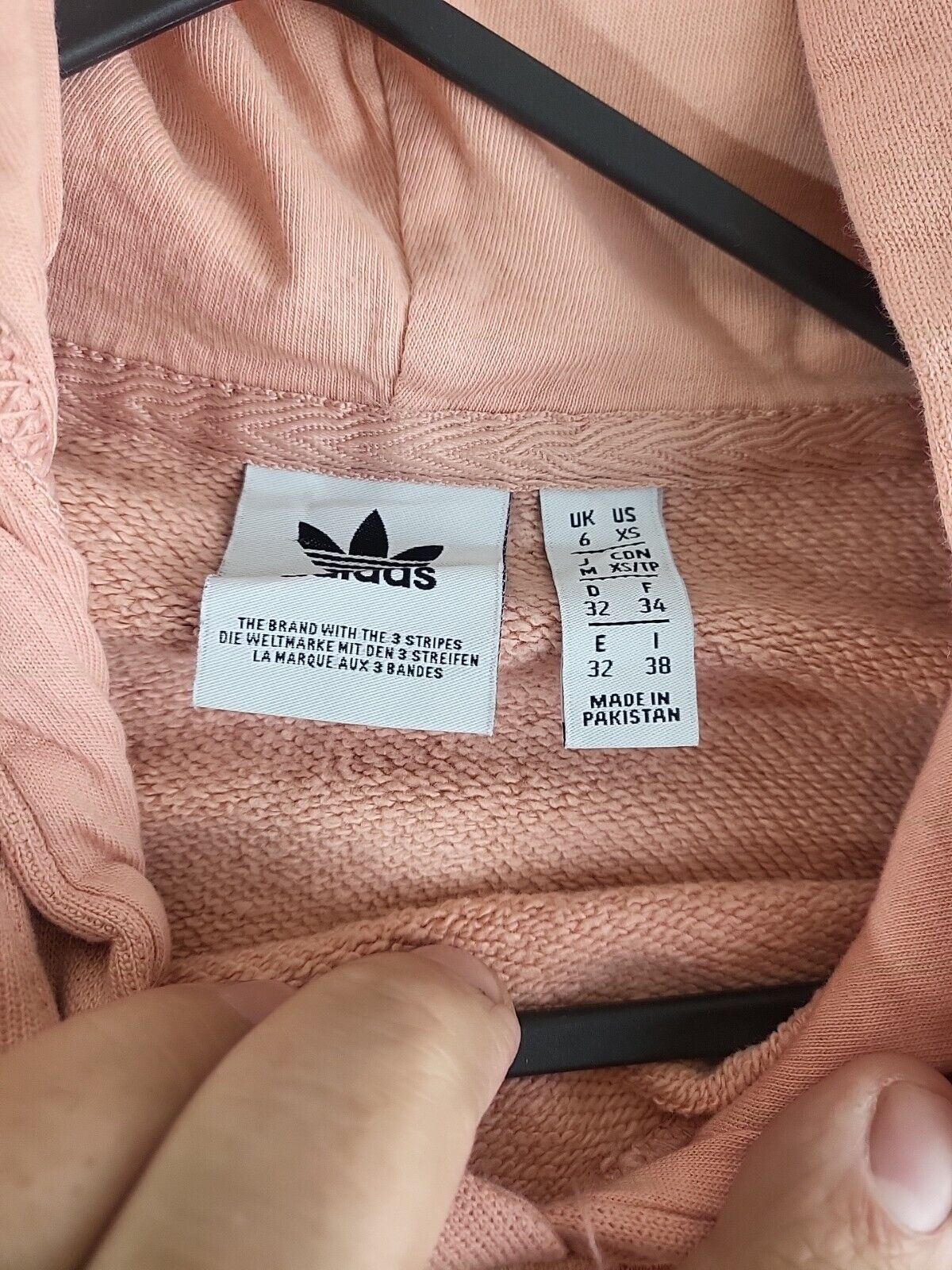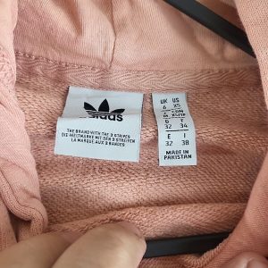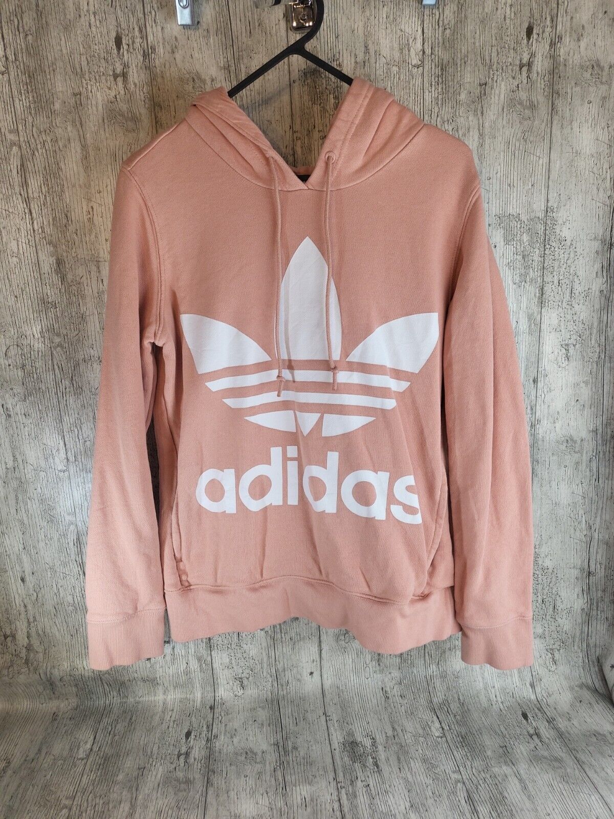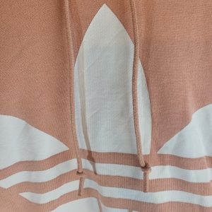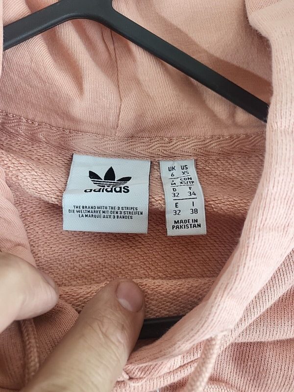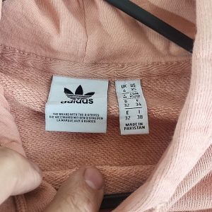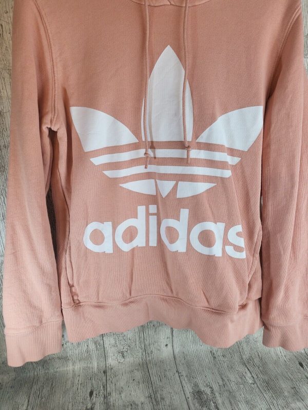 Adidas salmon Pink printed Spellout Hoodie Womens Size 6 Xs vgc.