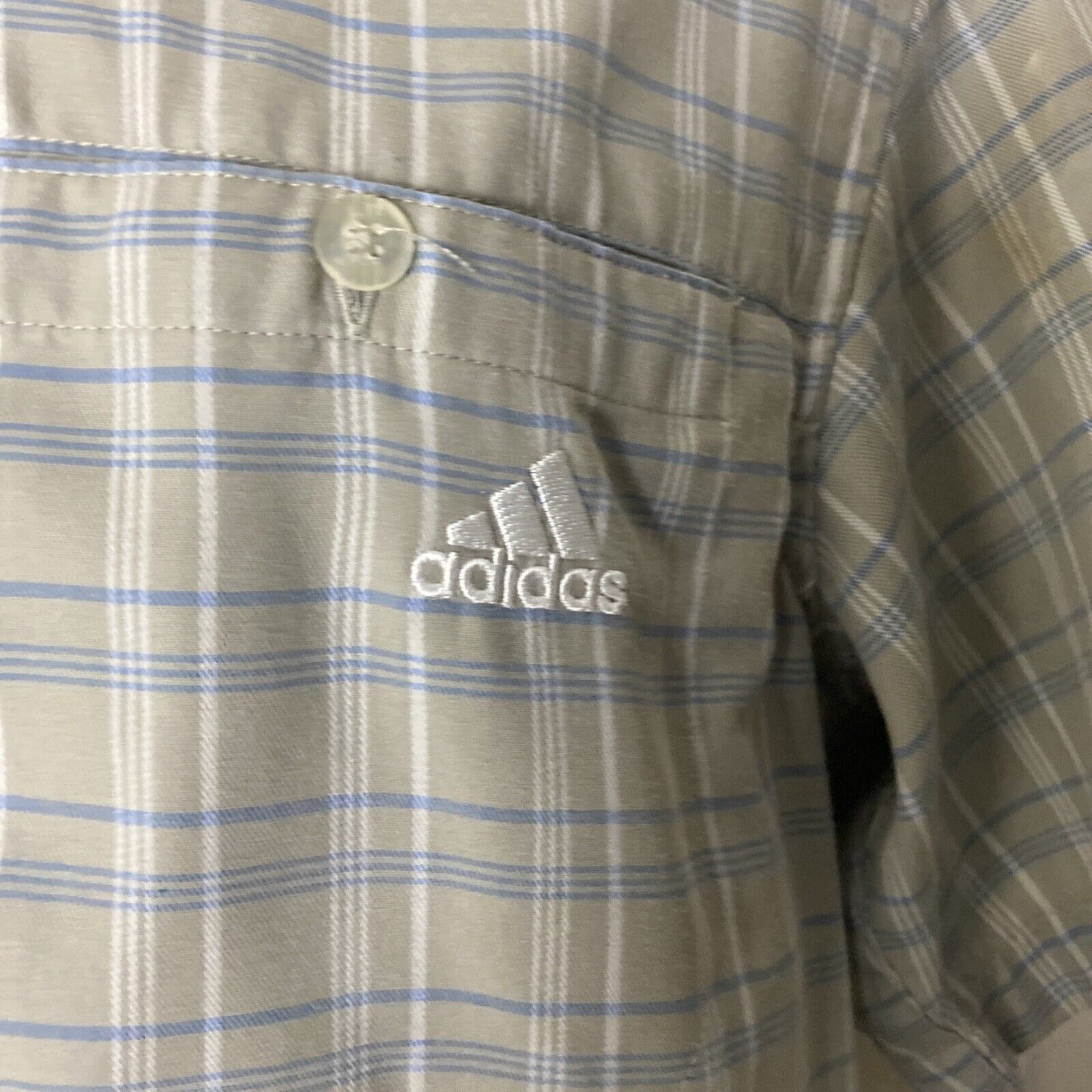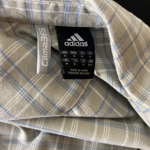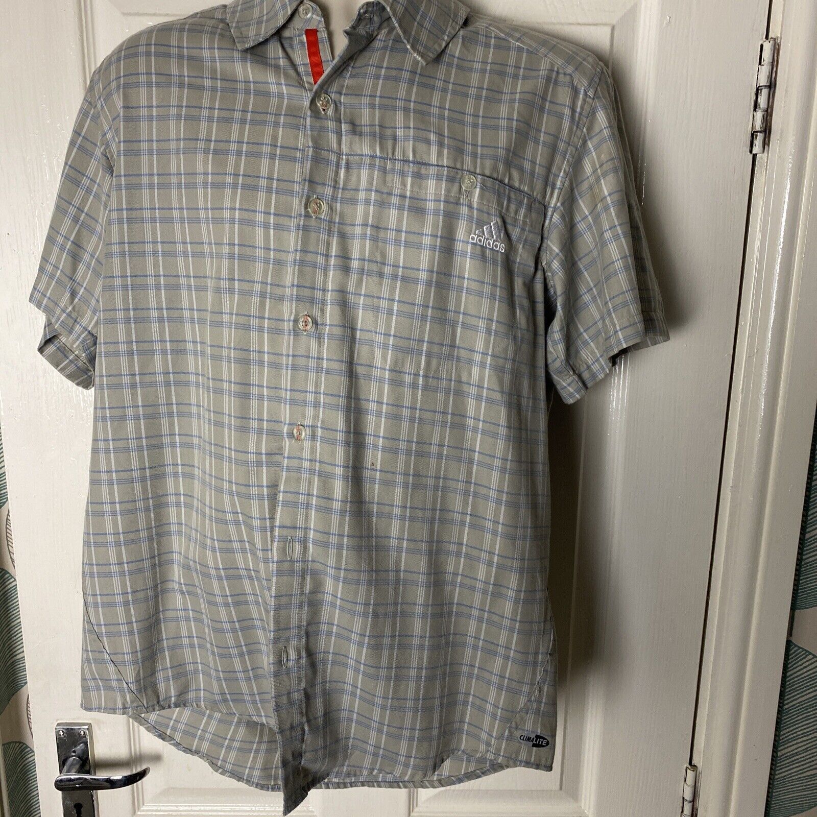 HH820 MENS ADIDAS CLIMA 365 GREY BLUE CHECK LOOSE FIT S/SLEEVE SHIRT UK M EU 50.