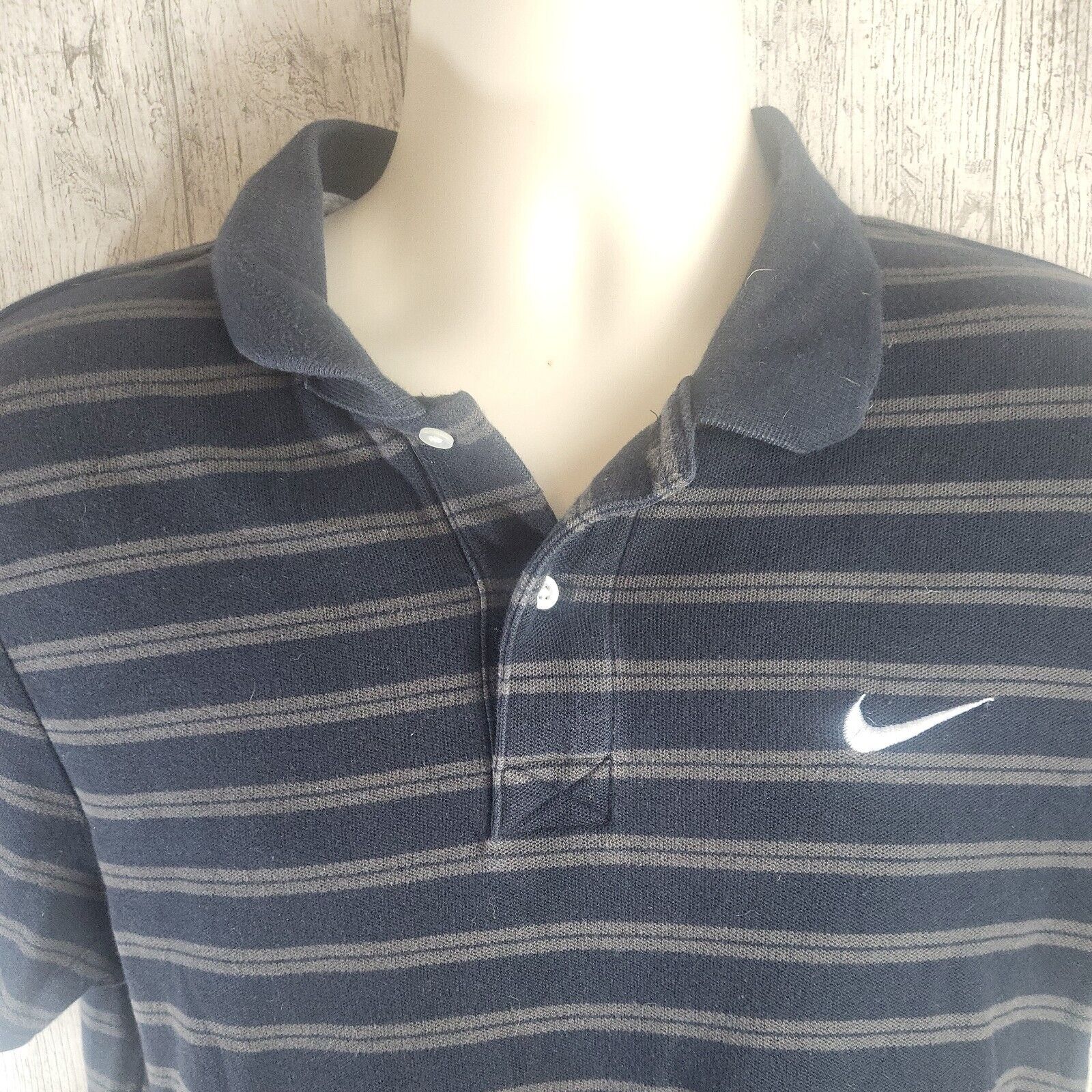 Nike Polo Shirt Black Ark Grey Striped Size Large.