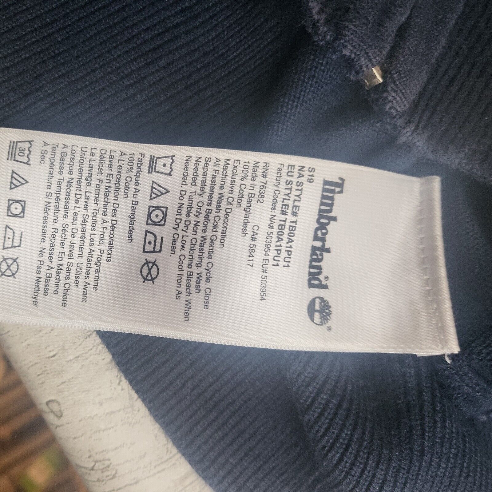 Timberland Navy Large Zipped Sweatshirt.